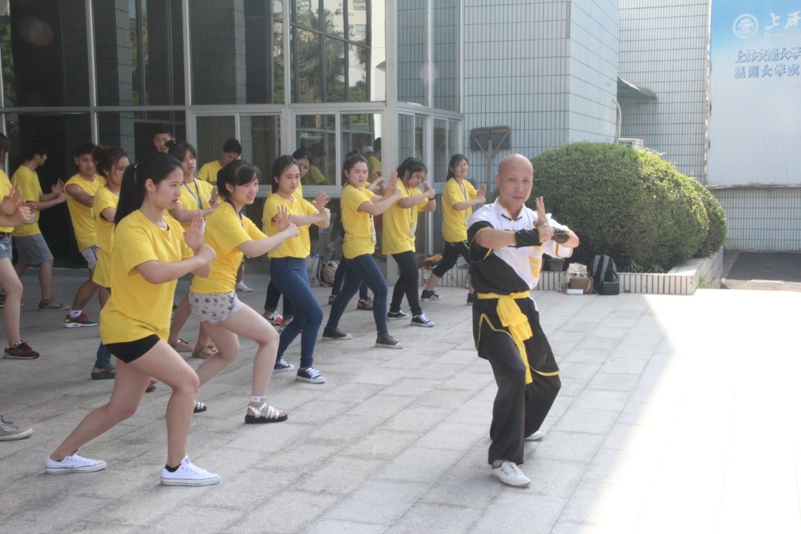 木师傅及其弟子首先为营员们表演了一套完整的五祖拳拳法,该拳刚劲中有舒缓,柔和中有爆发,迎来了阵阵叫好声。接下来,木师傅及其弟子将拳法分解成10多个小段,强化动作的分解练习。营员们一招一式地学习,虽然汗流浃背却也乐在其中。