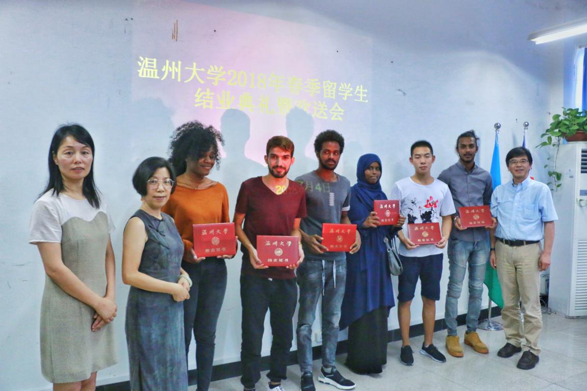 叶苗、陈军、陈文远分别为到场的33位结业学生颁发了结业证书和纪念品。叶苗分别为乌干达籍语言生MBAZIIRA HENRY、泰国籍语言生INTAVAREE MISS CHITCHANOK 颁发了校友联络员证书。最后,叶苗作总结讲话。她代表学院(留管部)对语言生顺利结业表示祝贺,并对他们所取得的进步表示肯定。她说,“在温大学习的每一天都会给你们留下了成长的印记,你们也给温大留下了深刻的印象。你们的名字将永远留在yl6809永利官网的校友名录中”。她指出,学习汉语给同学们赋予了外语的力量,有双语和多语能力的人比起单语的人更有优势,有更好的跨语言跨文化交际能力和更开阔的国际视野,同时,她希望同学们为自己所学的外语赋予更强的力量,做更多更有意义的事情,成为自己国家与中国文化交流的友好使者,为两国之间的经济、文化发展做出自己的贡献。最后,她表示,“yl6809永利官网欢迎你们常回来看看,yl6809永利官网是你们永远的家。”