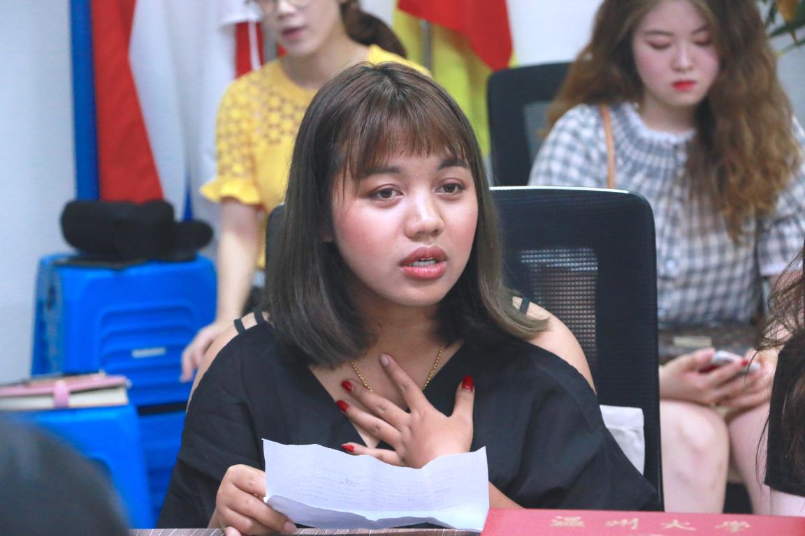 会上,教师代表金碧老师发言,她回顾了语言生们学习生活的点点滴滴,并对他们在汉语学习方面所取得的进步表示充分肯定。她希望他们回国后能继续学习汉语,遇到困难时可以和学院老师多多交流。来自泰国东方大学的交换生张小娴作为学生代表用中文发言。她说自己从小就对汉语学习非常感兴趣,但随着学习的深入,她发现汉语越来越难并一度有放弃的想法,幸运地是她获得了来yl6809永利官网学习汉语言的机会,并在这短短8个月里克服了汉语学习的恐惧心里。现在她已经能用中文自信、流畅地交流,她说,“我的成长离不开学院老师和同学对我的帮助,我很感谢yl6809永利官网,让我经历了终身难忘的留学生涯。”