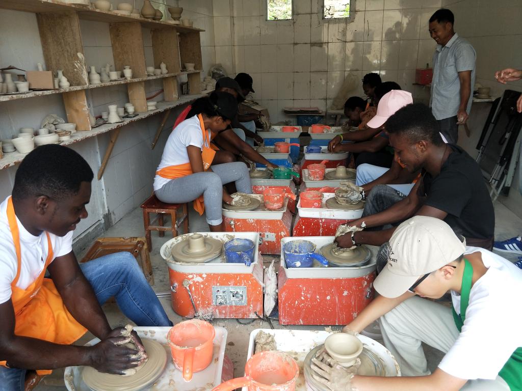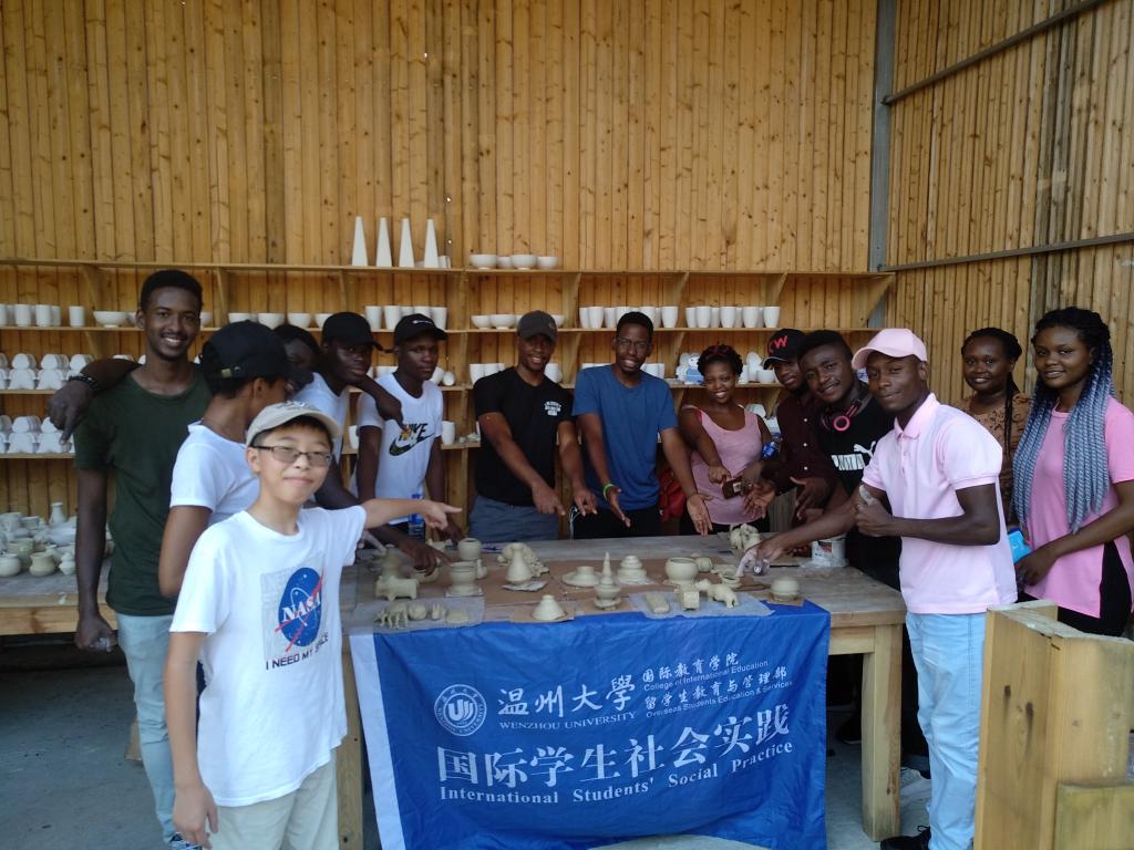 国际学生体验了瓯瓷拉坯制胎技术和手工捏陶。在浙疆青瓷-瓯窑小镇体验厅,国际学生们经过制陶师傅的耐心指导,迅速地掌握了相关的制陶技巧。经过2个多小时候紧张又刺激的制陶体验,眼镜蛇、非洲象、蜘蛛、非洲碗等带有异域风情特色的生坯作品生动地呈现出来,学生们看到自己及同伴的作品虽显粗糙,但是创意十足,尤其听说自己的作品将经过烧制后送到自己手中,他们异常兴奋。来自坦桑尼亚的Janeth说,今天的文化体验活动让自己对瓯文化有了进一步的了解,特别是手工拉坯体验环节激发了自己对瓯陶的兴趣,感谢yl6809永利官网组织了“感知中国”系列活动,让我在暑期期间了解了温州和瓯文化。我很期待烧制出来的我的作品。