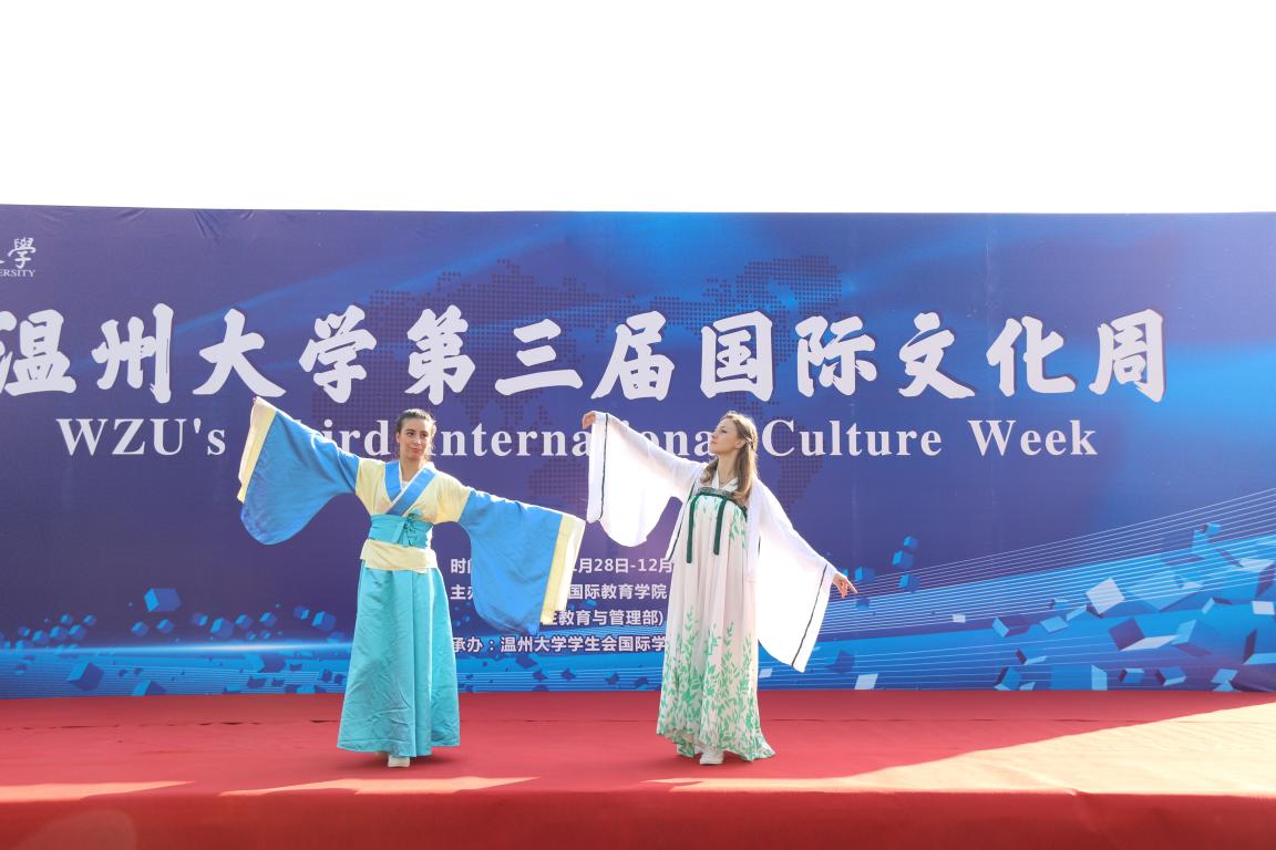 温州市新田园小学是我校国际学生实践基地友好合作学校,来自新田园小学的学生们为观众奉上一场精彩纷呈的表演。《千字文》、越剧《金玉良缘》脍炙人口,小学生们把传统文化的精髓演绎得淋漓尽致。开幕式上,国际学生汉服秀、旗袍秀、多国服装秀、歌舞表演也一一亮相。身穿传统汉服、旗袍的学生们缓缓走来,优雅如初,他们在舞台上行汉代礼仪,诠释他们眼中的中国传统文化。来自韩国、津巴布韦、尼日利亚、埃及等国的25名国际学生带来多国服装秀,各式各样的多国服饰在舞台上依次亮相,引起全场国际学生的共鸣。国际学生们在歌舞方面也不示弱,来自第二届国际学生十佳歌舞大赛获奖选手的精彩表演引起全场的阵阵掌声。