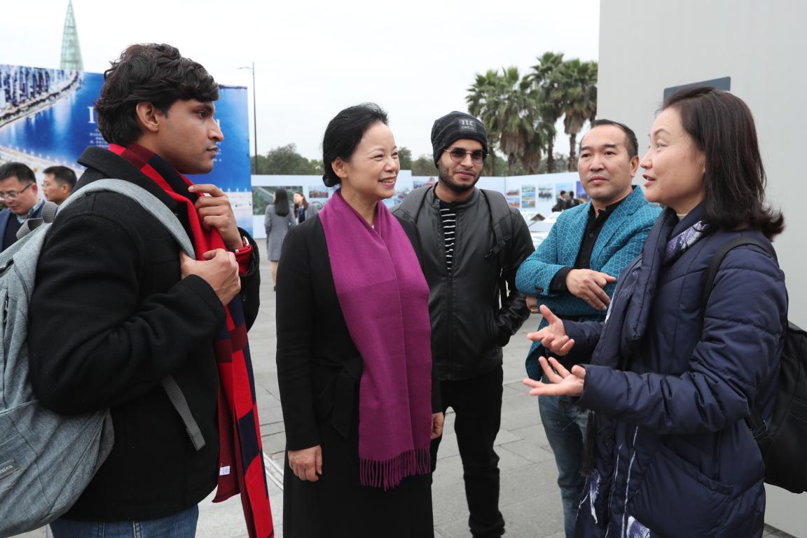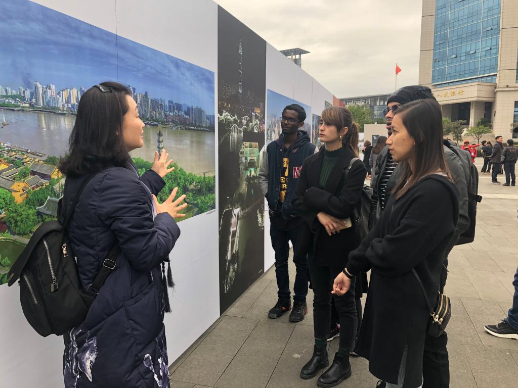 26日下午,yl6809永利官网来自“一带一路”国家的国际学生来到温州大剧院广场,跟随温州市委宣传部胡剑谨部长的脚步,一边听取讲解员的介绍,还不时停下来询问,胡部长亲切地给予他们解答说明。通过图片,国际学生们能够更直观地了解改革开放40年来温州城乡面貌发生的巨大变化、百姓生活发生的历史性变革和取得的历史性成就,特别是看到他们自己所熟悉的地方和建筑的前世今生后,不时发出阵阵惊叹。参观结束后,国际学生讲述了他们参观后的感受。