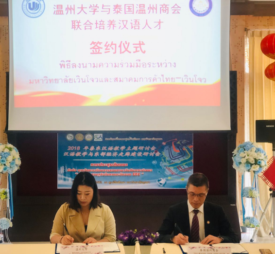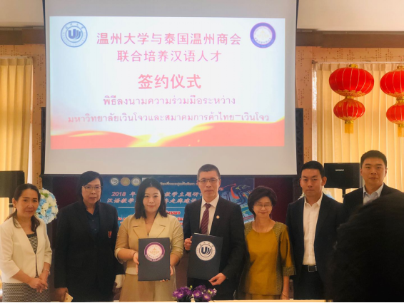 2018年12月21日,在泰国东方大学孔子学院内,yl6809永利官网与泰国温州商会签署汉语人才培养协议,泰国温州商会委托yl6809永利官网培养中资企业在泰国所需的汉语言人才,同时,泰国温州商会在泰国为yl6809永利官网招收国际学生。双方通过合作,加强yl6809永利官网与温州商会之间的人才培养关系、促进中泰两国国际教育发展。