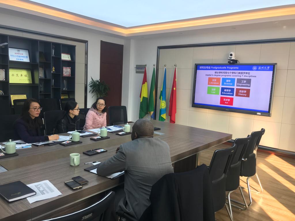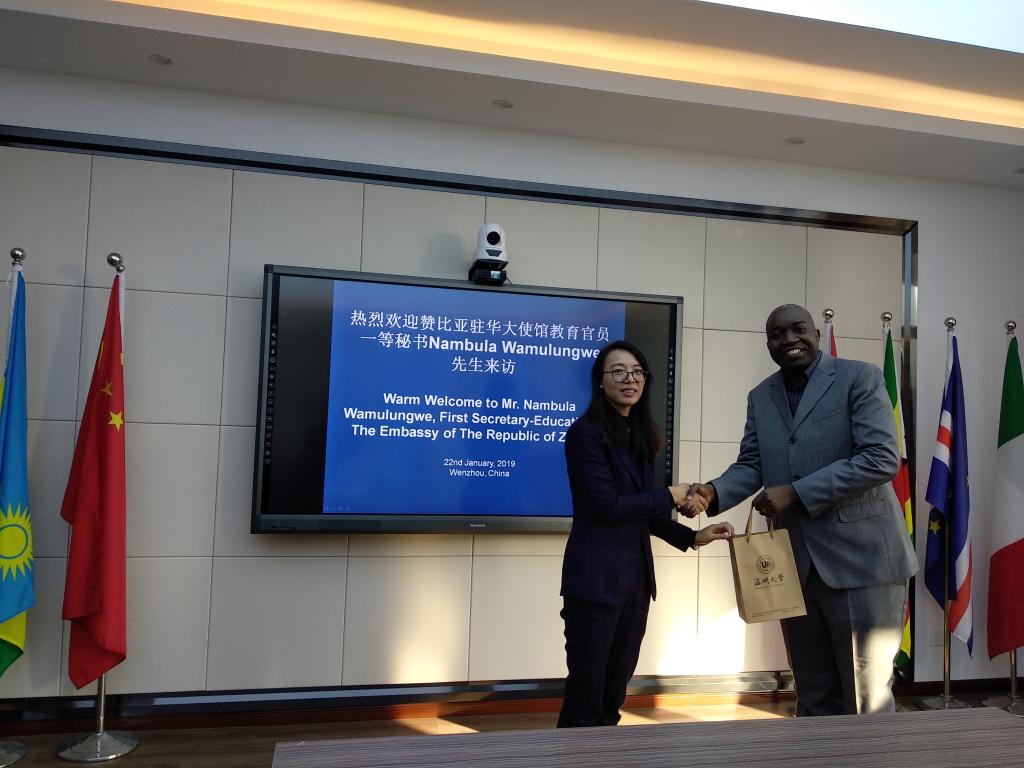 1月22日,赞比亚驻华大使馆教育官员一等秘书Nambula Wamulungwe访问永利官网,yl6809永利官网副院长包含丽热情会见客人。