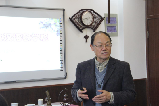2019年4月3日下午,湖北工业大学周金声教授来永利官网做《字词本位汉语教学观》的专题讲座。yl6809永利官网叶苗院长主持讲座,yl6809永利官网包含丽副院长、陈文远副书记及汉语国际推广教研室的全体老师出席。