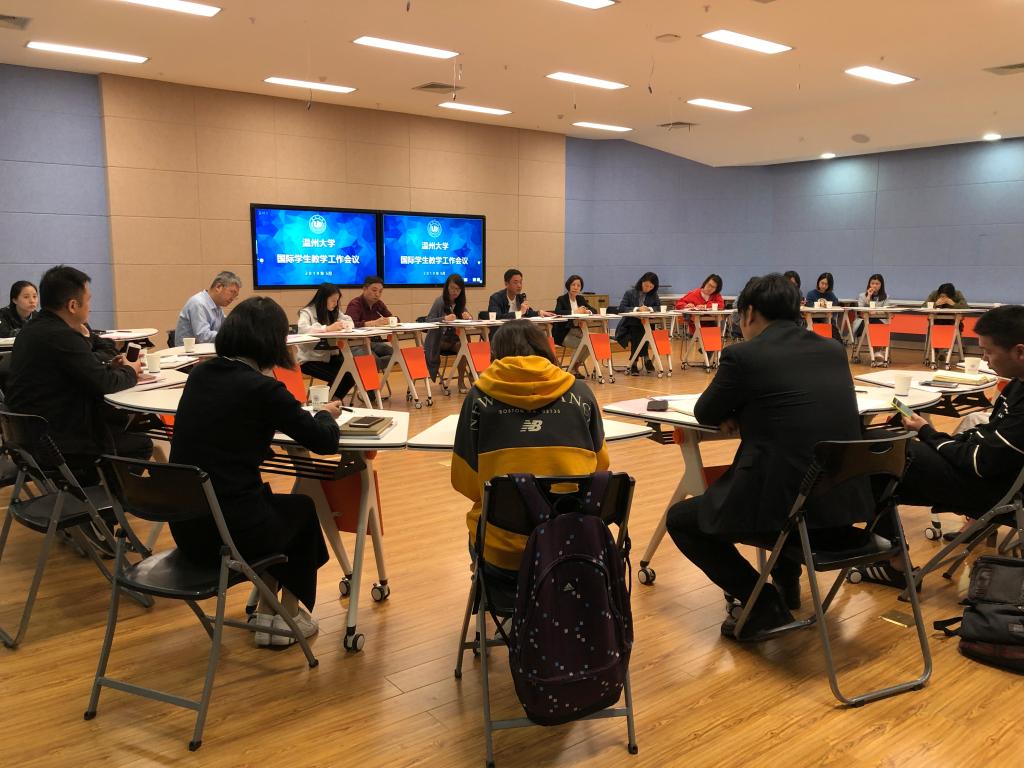5月7日上午,我校国际学生教学工作会议在岩松堂叶适厅召开,副院长钱强、留学生教育与管理部相关负责人、各专业学院分管领导、国际学生专员及班主任参加了本次会议。留学生教育与管理部主任叶苗主持会议。