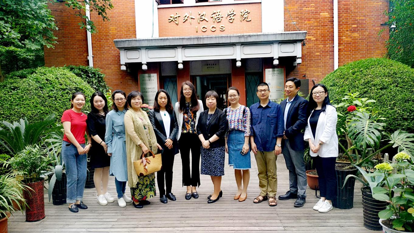 上海师范大学是上海市最早开展留学生汉语教育的学校,至今已有54年历史。上海师范大学对外汉语学院的教学与科研实力在业界享有盛誉。此次交流,上师大对外汉语学院院长曹秀玲教授、副院长姚占龙副教授和胡建峰副教授、汉语国际教育专业硕士负责人刘慧清副教授、汉硕导师朱庆祥博士和汉硕专业教师张欣老师热情地接待了老师们并出席座谈会。