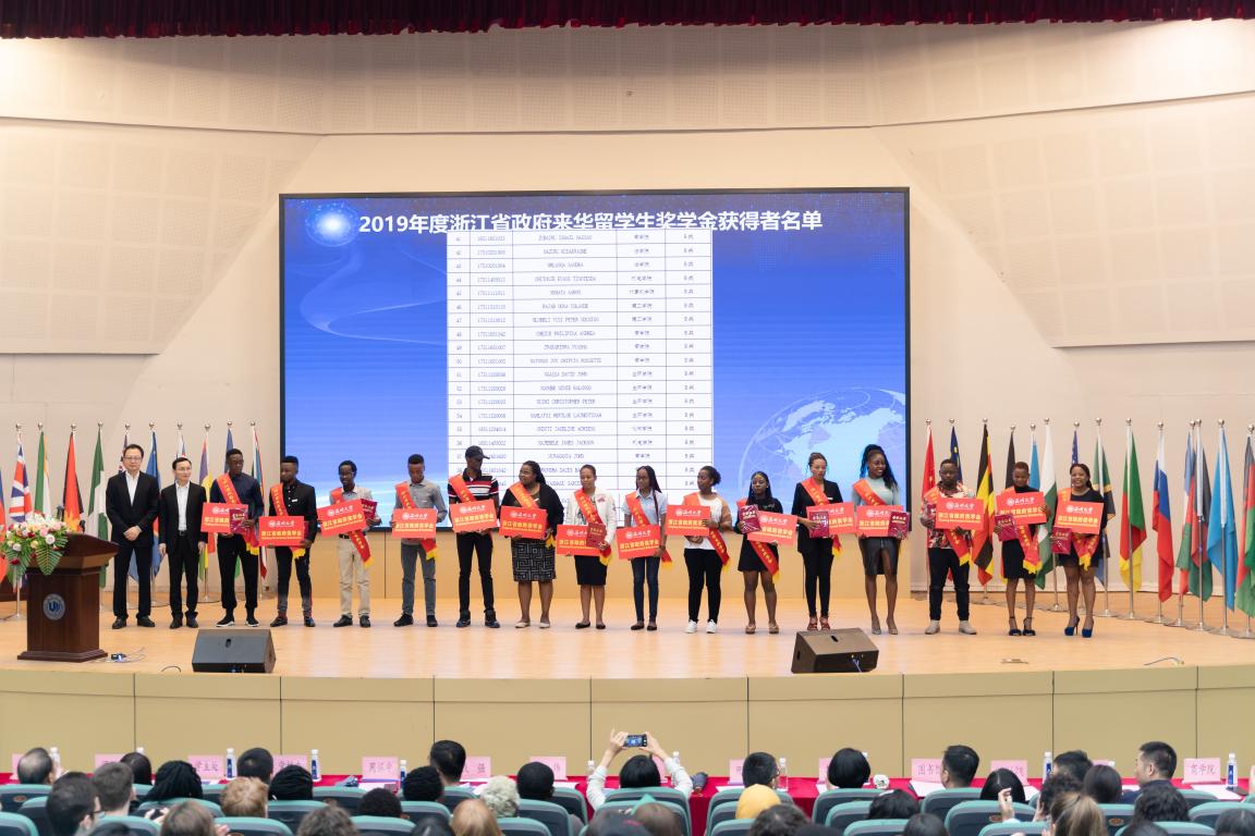 yl6809永利官网(留管部)院长叶苗教授在开学典礼上宣读奖学金文件,到场嘉宾和各部门负责人、学院领导为130余名yl6809永利官网校长奖学金一等奖、浙江省政府奖学金获得者进行颁奖,颁奖仪式隆重有序,表彰学习、道德方面品学兼优的学生们,同时也勉励在场的每一位新生。颁奖仪式后,副校长钱强、yl6809永利官网院长叶苗教授为来自意大利和科摩罗的两位国际新生代表佩戴校徽,赠送文房四宝,在场新生同时佩戴校徽,成为真正的“温大人”。