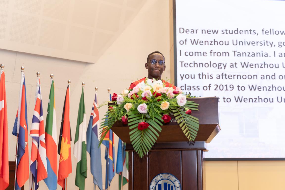 开学典礼上新老国际学生代表发言引起阵阵掌声。来自坦桑尼亚的2018级计算机科学与技术专业学生陆求是同学说,自己刚来温大的时候还不太适应,慢慢地身边的老师和同学给了他很大帮助,让他逐渐学习汉语,也学会了很多新的生活技能。陆求是还是今年一等校长奖学金的获得者,他说道:“yl6809永利官网为我们提供了丰富的教育资源和图书资料,希望大家好好学习,多多思考,尊敬师长,以优异的成绩回报父母和学校。”来自意大利的TARANTINO MARIA两年前曾作为交换生来到我校学习,今年她重新作为汉语进修生回到这里攻读汉语,现在已经可以用流利的中文进行发言。她说,随着对中国文化的了解和对温大的熟悉,她越来越喜欢大学城的风景宜人和大罗山的秀美,这里还有新鲜的空气和安静的学习环境,老师们热情的帮助和专业的学识、校园活动的丰富多彩和活泼有趣都是她决定再次回来学习的原因。