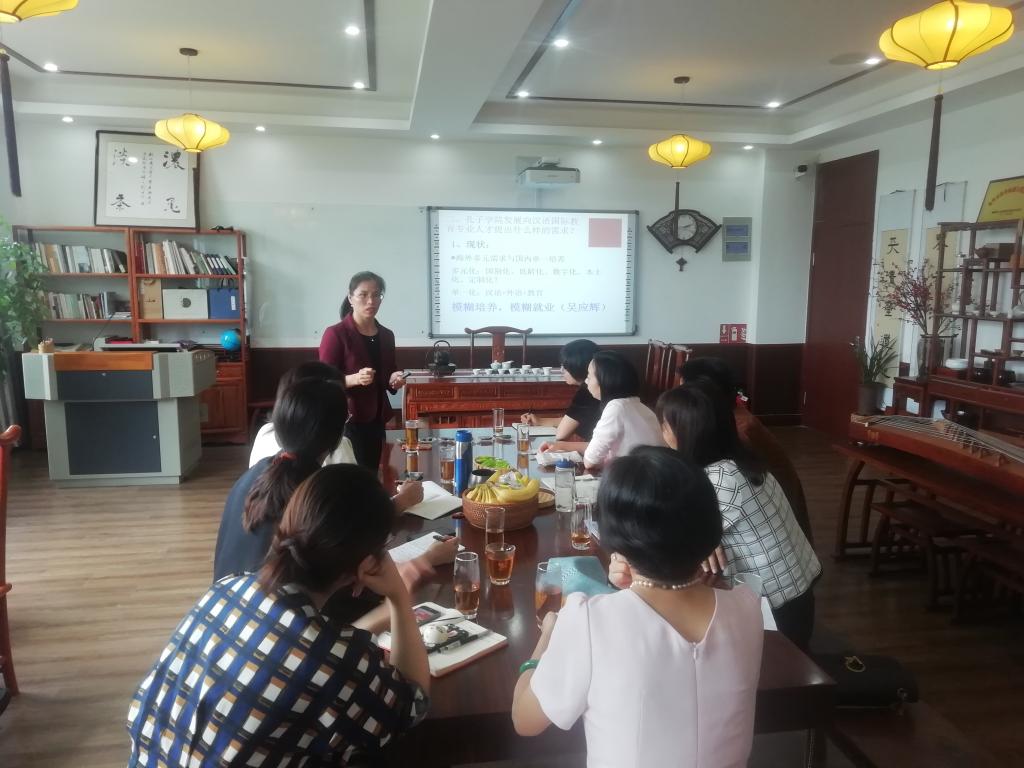 郭教授致力于汉语国际教育专业多年,管理及教学经验十分丰富。讲座伊始,郭教授介绍了海外孔子学院的最新动态,接着就“孔子学院发展向汉语国际教育专业人才提出什么样的需求”为问题,为汉语国际教育硕士及本科专业建设提出了清晰且具体的指导意见和有效方案。