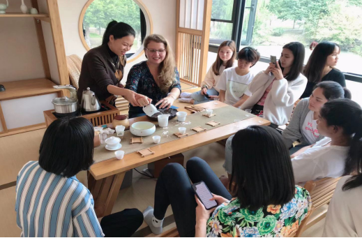 为了让每位留学生亲身体验到沏茶倒茶,鉴茶品茶等传统茶艺,留学生被分为几个了小组,分别处于不同的茶室。