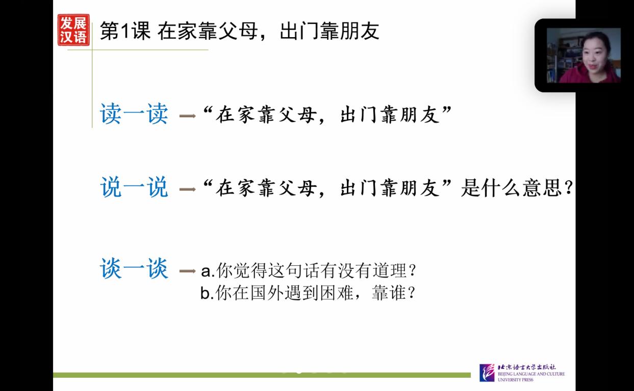 永利官网语言生主要来自英国、泰国、尼日尼亚,韩国、意大利等国家,根据学生起始汉语水平分为A2班、B1班、B2班、C2班4个班级。因地域跨度大时差问题特别突出,经过各班主任和学生的沟通,每个班级的时间又进行了重新调整。为方便学生,有的教师甚至牺牲自己休息时间,把课程安排到了晚上。对于实在无法跟班上课的学生,老师们采用录课的形式,发给学生自主学习。