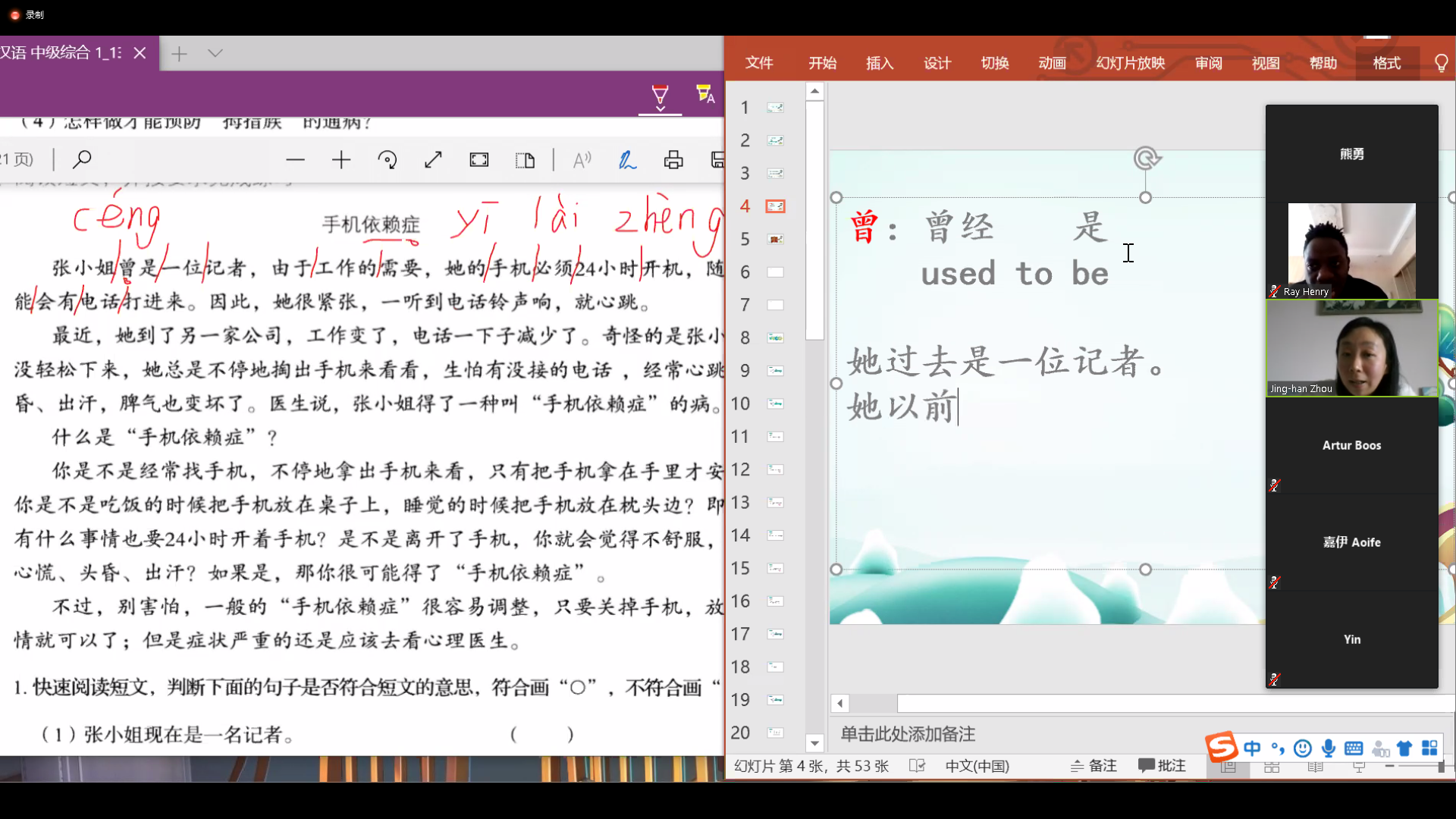 教师们采取录课和直播等多种方式,确保学生都能正常听课,并通过一对一或一对多的答疑互动确保教学质量。其中“汉语二”的3位教师,在采用录课教学的同时还开设了微信公众号,用于实时发布教学信息。