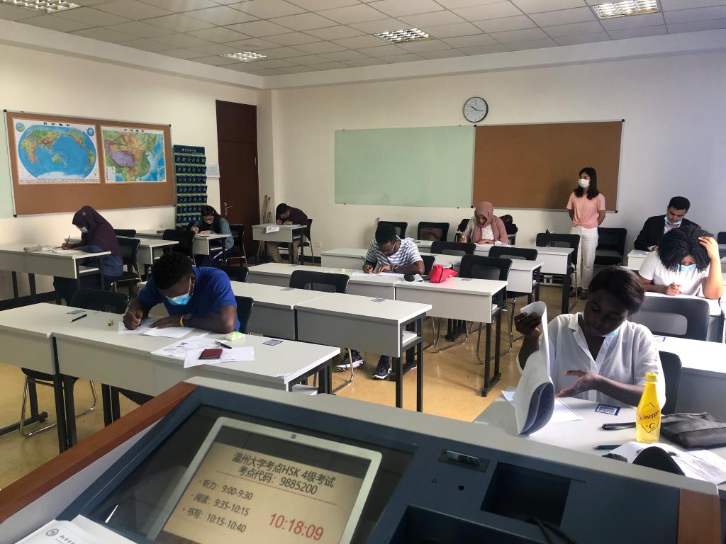今年全国3月、4月HSK、HSKK考试由于疫情影响取消或延迟,yl6809永利官网作为温州地区唯一的HSK考点,为确保2020届国际学生顺利毕业,yl6809永利官网HSK考点于5月23日特为yl6809永利官网和温州医科大学的国际学生举办了HSK四级、五级考试。从前期报名,到落实考试,永利官网HSK考点的工作人员积极与学校保卫处、温州医科大学yl6809永利官网工作人员沟通联系,确保了本次考试的顺利进行。