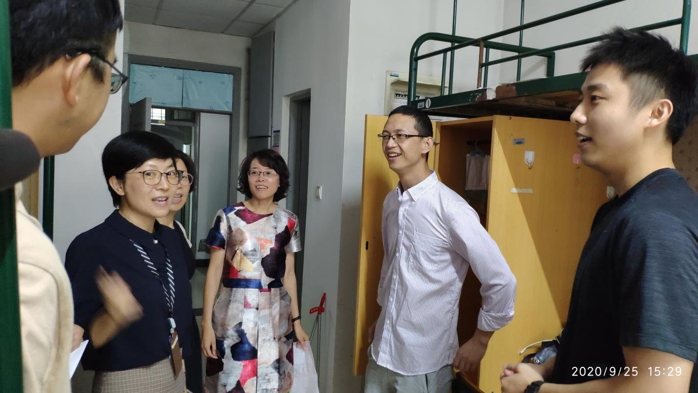 下午,学院院长叶苗老师、党总支书记林爱菊老师、副书记张雪萍老师在班主任叶晓锋老师、学工办辅导员的陪同下一同前往学生公寓看望了全体新生。第一时间的慰问让新同学倍感亲切,嘘寒问暖尤显真情。