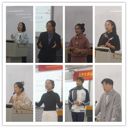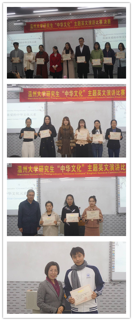 至此,由yl6809永利官网研究生党委工作部主办,yl6809永利官网承办的首届以中华文化为主题的“我最喜爱的一个中华文化元素”英文演讲比赛圆满结束。为学当及时,何能待来兹!这次参赛的同学踊跃报名,严谨、细致的准备讲稿,潇洒利落的赛场表现,无不反映着温大研究生昂扬向上的精神气质和风貌。各位同学,加油!