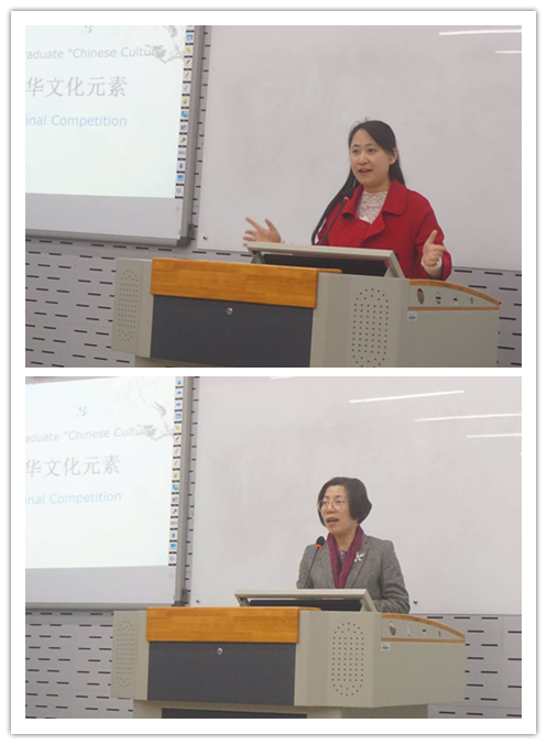 参赛选手演讲完毕后,童芳莉老师、周亚娟老师和叶苗老师三位评委都分别用流畅的英语进行了点评,表扬了表现突出的选手,并肯定了本次以中华文化元素作为主体的演讲比赛。