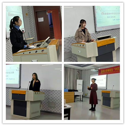 本次演讲比赛分为初赛和决赛。初赛前收到来自yl6809永利官网、外国语学院、人文学院、商学院等11个学院共42位研究生的参赛稿件。12月4日16:00,初赛在yl6809永利官网201教室举行。参赛选手以饱满的情绪讲述了自己最喜爱的中华文化元素,现场反应热烈,呈现了大学生对祖国文化的热爱。外国语学院纪翠萍老师、外国语学院周亚娟老师、外国语学院童芳莉老师、以及yl6809永利官网阚文文老师、张珉璐老师和李晶老师等专业教师受邀作为评委出席本场比赛。