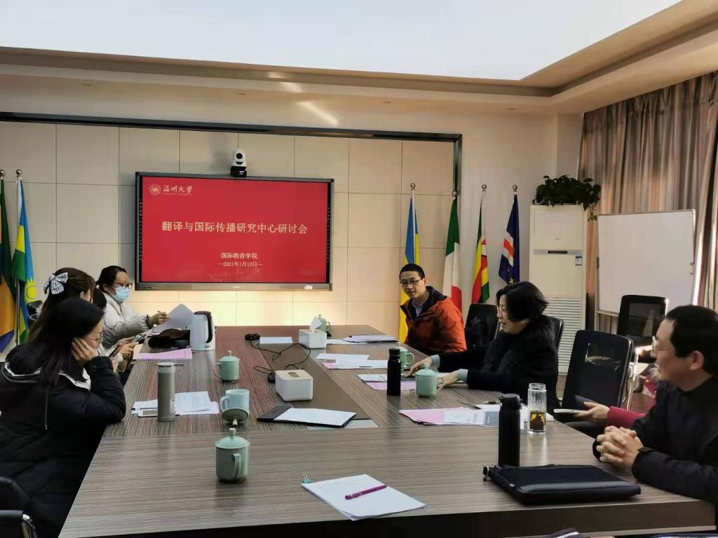 2021年1月13日下午,翻译与国际传播研究中心研讨会在yl6809永利官网311会议室召开。翻译与国际传播研究中心主任叶苗,副主任吴之欧、阚文文、夏蓉,以及研究中心的其他成员参与了研讨会,会议由叶苗主任主持。