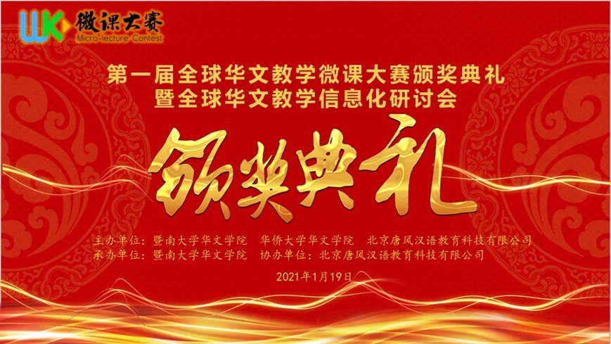 1月19日20:00,由暨南大学华文学院、华侨大学华文学院联合唐风汉语共同发起的第一届全球华文教学微课大赛颁奖典礼暨全球华文教学信息化研讨会在线上隆重举行!永利官网教师吴晓菲在个人赛(国内组)中获得三等奖的佳绩!