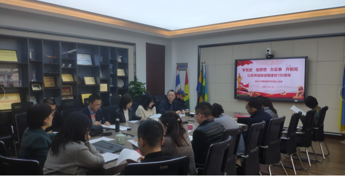 3月9日下午,yl6809永利官网教工党支部召开党史学习教育动员大会,深入学习贯彻落实习近平总书记在党史学习教育动员大会上的重要讲话精神,全体教工党员参会,党总支书记林爱菊主持。