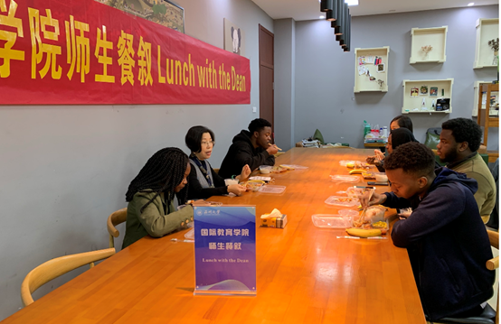 首次师生餐叙出席领导为叶苗院长,参与学生为来自马来西亚、尼日利亚、津巴布韦、马拉维的6名国际学生。国际学生来自商学院、法学院,他们通过自主报名参与到此次活动中,希望能为其他学生向院长传达国际学生的声音。