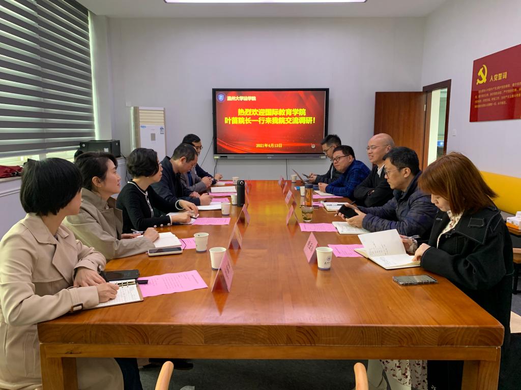 4月13日上午,yl6809永利官网院长叶苗、副院长熊勇、吴之欧,副书记方建晓及科室负责人等赴商学院、法学院进行交流调研。