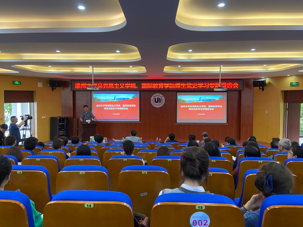 4月28日下午,yl6809永利官网、马克思主义学院师生济济一堂,在国际楼203会议室召开师生党史学习专题报告会,马克思主义学院段智峰博士讲述“解读长征与长征精神”,王柏民书记主持。