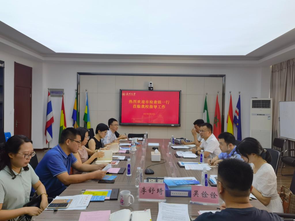 为贯彻落实《浙江省教育厅办公室关于开展留学生暑期工作专项检查的通知》精神,落实我校留学生管理制度和相关要求。7月14日上午,由温州市教育局高等教育处侯伯念副处长、对外合作与交流处张仁杰、市公安局出入境管理局欧阳超警官、瓯海区公安分局出入境管理大队陈小菲警官组成的检查组一行来我校开展暑期工作专项检查。yl6809永利官网院长叶苗、党总支书记林爱菊、保卫处处长孙安梭、国际交流与合作处副处长郑婷、副书记方建晓、学院学工办、办公室相关负责人一同参加了检查工作会,会议由yl6809永利官网党总支书记林爱菊主持。本次专项检查聚焦来华留学生暑期管理工作,主要有专题汇报、查看台账、实地检查、反馈交流等多个环节。