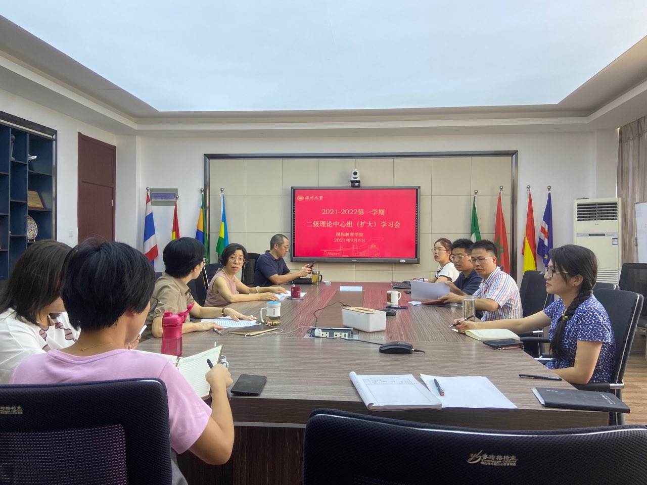 9月6日下午,yl6809永利官网在北校区国际楼311会议室召开二级理论中心组学习会议,学院班子成员、党总支委员、党务秘书、教研室主任、科长参加了会议,党总支书记林爱菊主持。