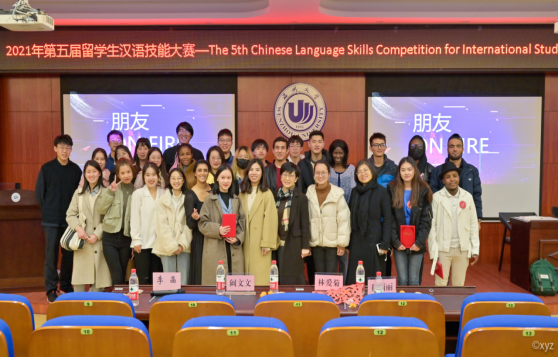 汉语是桥,文化是家。2021年12月8日下午4:00,“朋友,ON FIRE!”第五届留学生汉语技能大赛于yl6809永利官网203报告厅隆重举行。经过一轮激烈角逐,最终进入决赛选手共13位,其中语言类11位,非语言类2位。各国选手通过配音、朗诵、唱歌、书法、手工艺的形式,展现出自己的优秀风采和精神面貌。yl6809永利官网党总支书记林爱菊老师,汉语国际教育教研室阚文文老师、徐丽丽老师和李晶老师出席并参加本场活动,现场吸引了众多中外师生共同观看,享受这一文化交流的国际盛宴。