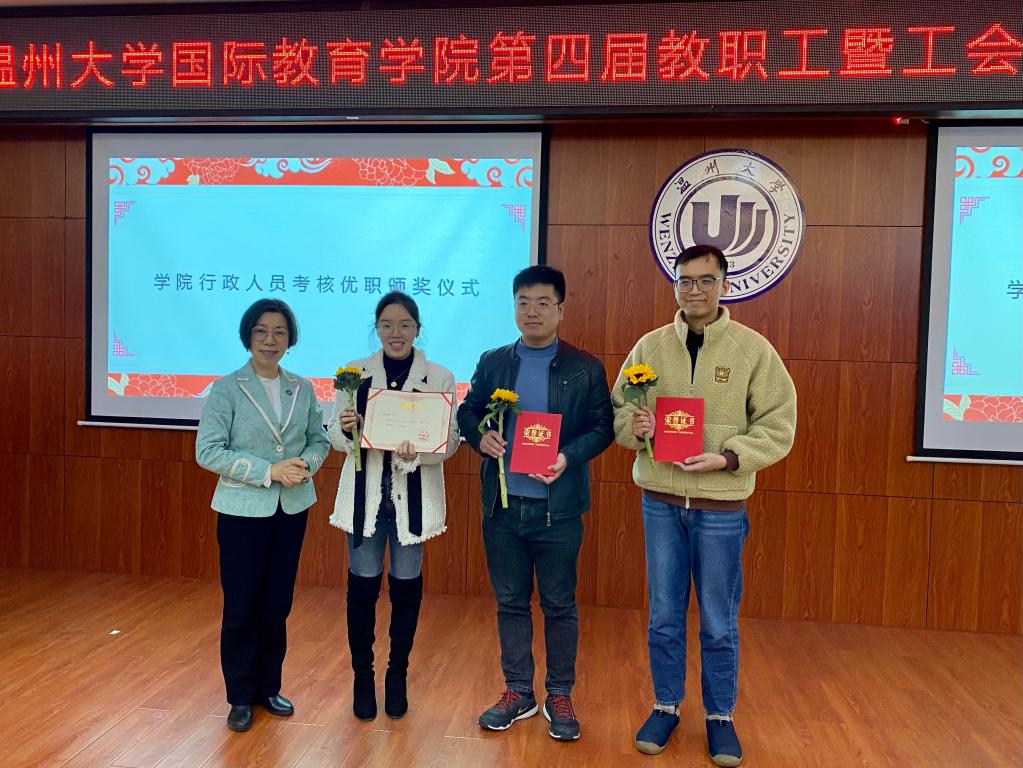 会议举行了二个奖项的颁奖。获yl6809永利官网2021年度“院长特别奖”的为汉语国际教育专硕建设团队;获学院行政人员2021年度考核前三名为李舒琦、吴铨铨、钱江潮。