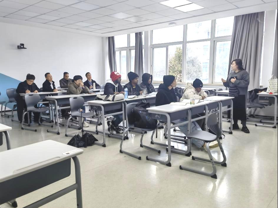 王舜副校长一行走进国际生课堂,聆听了张珉璐老师的初级汉语口语课,课上老师讲的神采飞扬,学生们也听得津津有味,时不时发出欢乐的笑声,课堂氛围融洽。课后王校长也对张珉璐老师的教学水平表示肯定。