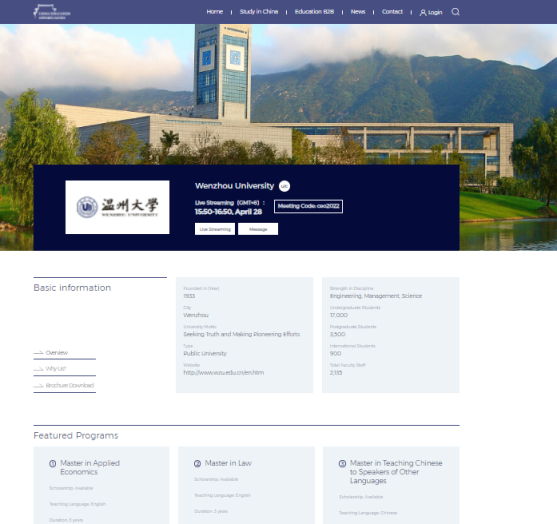 4月28日下午3:50,我校留管部通过中国教育国际交流协会“2022中国高等教育国际招生线上展”开设的Zoom直播平台,向有意来华留学的国际生推出招生宣讲。本次线上招生宣讲会也是我校为2022年秋季入学国际招生做的第四场线上直播宣讲会。