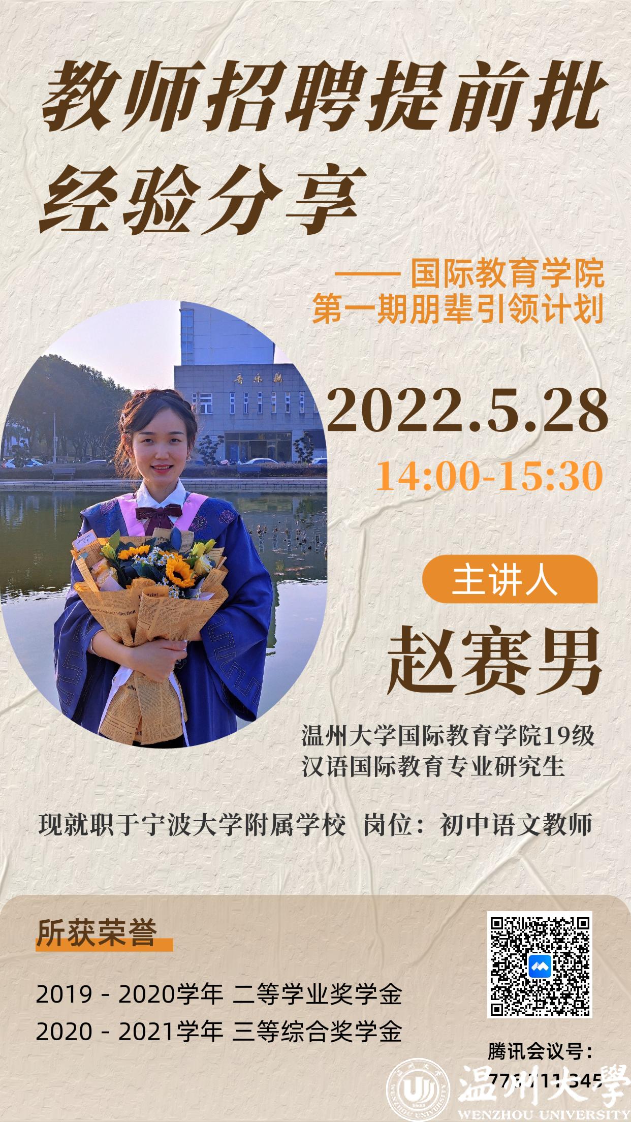 启动仪式后便开始了首期分享,本次活动邀请到19级汉硕专业优秀校友赵赛男为大家作教师编制招考的经验分享。