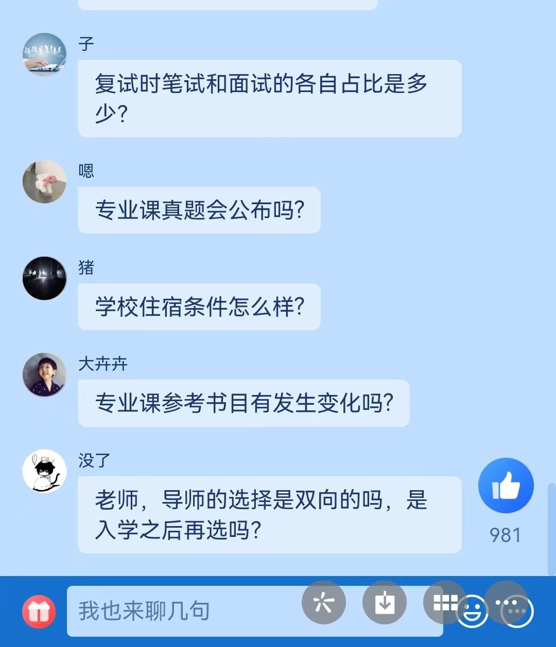 最后,俩位老师一起回答了考生疑问,向考生推荐了专业书籍,表达了对跨专业考生的欢迎,解答有关考试大纲的问题,对有志向报考yl6809永利官网汉语国际教育研究生的考生表达了欢迎与祝愿。宣讲会圆满结束。