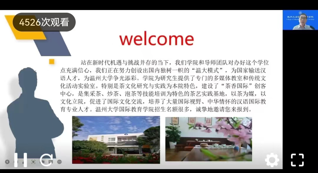 宋占美院长首先从yl6809永利官网的地理位置、校园环境、住宿条件介绍了yl6809永利官网的基本情况,接着就yl6809永利官网的师资力量、发展历史、组织结构进行了全面的论说,并讲述了报考温大汉语国际教育硕士的5大理由:1.具有全球竞争力的国际化人才2.资源共享,助推全球胜任力3.国际化教师团队,打造国际化氛围4.与国际生做同学,提高英语能力和拓宽国际视野5.可获得全球就业机会,提高考编考公通过率。