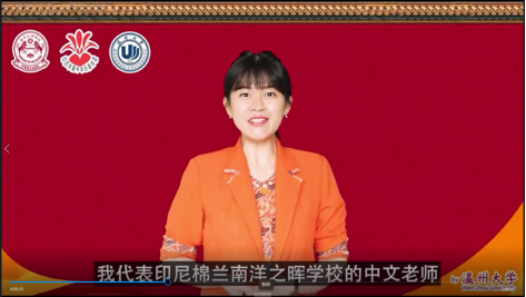 接着,中国、印尼教师代表分别对教学工作进行了总结发言并对学员提出了殷殷期望。yl6809永利官网张珉璐老师介绍了印尼学生的整体学习情况,并热切期盼未来印尼学生能来到yl6809永利官网的校园,和老师、同学面对面交流,实地了解和体验中国语言文化。张珉璐老师还播放了此次线上研修班总结视频,以此鼓励印尼学生来yl6809永利官网留学,圆“汉语梦”。印尼棉兰南洋之晖学校叶贤智老师对温大教师对学员们的耐心教导与悉心辅导给予诚挚感谢,表示学生们学习热情高涨,汉语水平也得到了一定提升。
