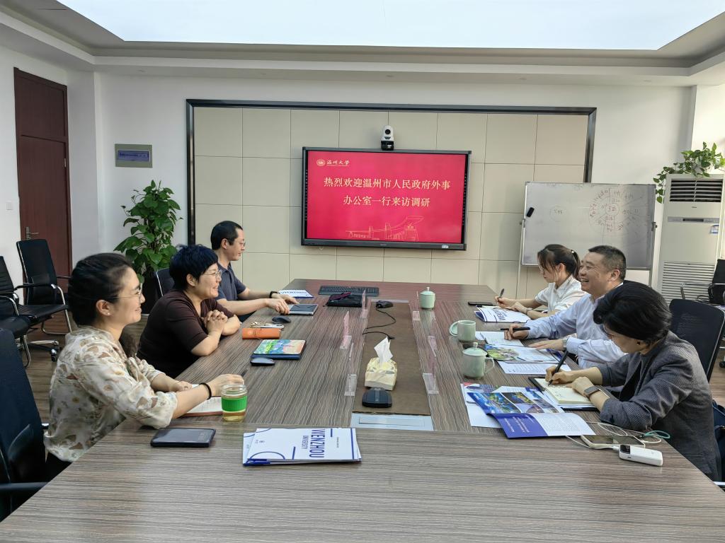 5月23日,温州市人民政府外事办公室党组成员、二级调研员陈进、对外交流处副处长叶瑶及国际交流中心主任王小倩一行来永利官网调研指导工作。学院院长宋占美、副院长熊勇和吴之欧出席了调研会。