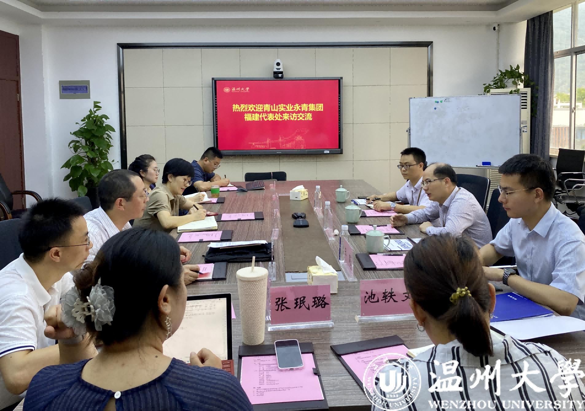 6月14日下午,青山实业永青集团福建代表处总经理陈纪亨、人力资源部副经理王胤、综合管理部副主任李偲一行来院交流洽谈,yl6809永利官网全体班子成员及通识教育教研室、招生科相关人员参加会谈。