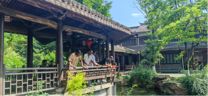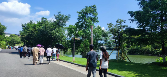 5月31日下午,晴空万里,风景如画。yl6809永利官网国际学生国情教育名师工作室暨“走进温州”开启了本学期系列活动的最后一站——三垟湿地暨南怀瑾书院。来自英国、俄罗斯、意大利、尼日利亚、越南、孟加拉国、泰国、土耳其、刚果、肯尼亚、摩洛哥、埃塞尔比亚等24个国家和地区的留学生们一起漫步三垟湿地并参观南怀瑾书院。三垟湿地是温州市内保持最完整的水网湿地,被誉为“浙南威尼斯、百墩之乡”,有城市“绿肾”的美称。留学生们满怀热情地参与到这次出行中,留下了很多青春的脚印。
