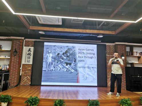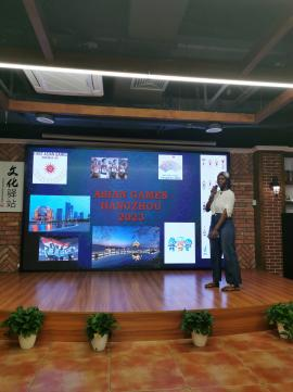 本次活动由国际学院教工第一支部书记涂海强发起、策划、主持。活动过程中,yl6809永利官网的国际学生安琪、贝勒、瓦达、安益、伊戈尔分享了自己对亚运会的认识和理解。同学们制作了精美的幻灯片和短视频,讲述了亚运会的文化知识、中国举办亚运会的历史、杭州亚运会的赛事文化、赛事项目、赛事场地等,现场每一位党员都感受到了国际学生的用心和认真。