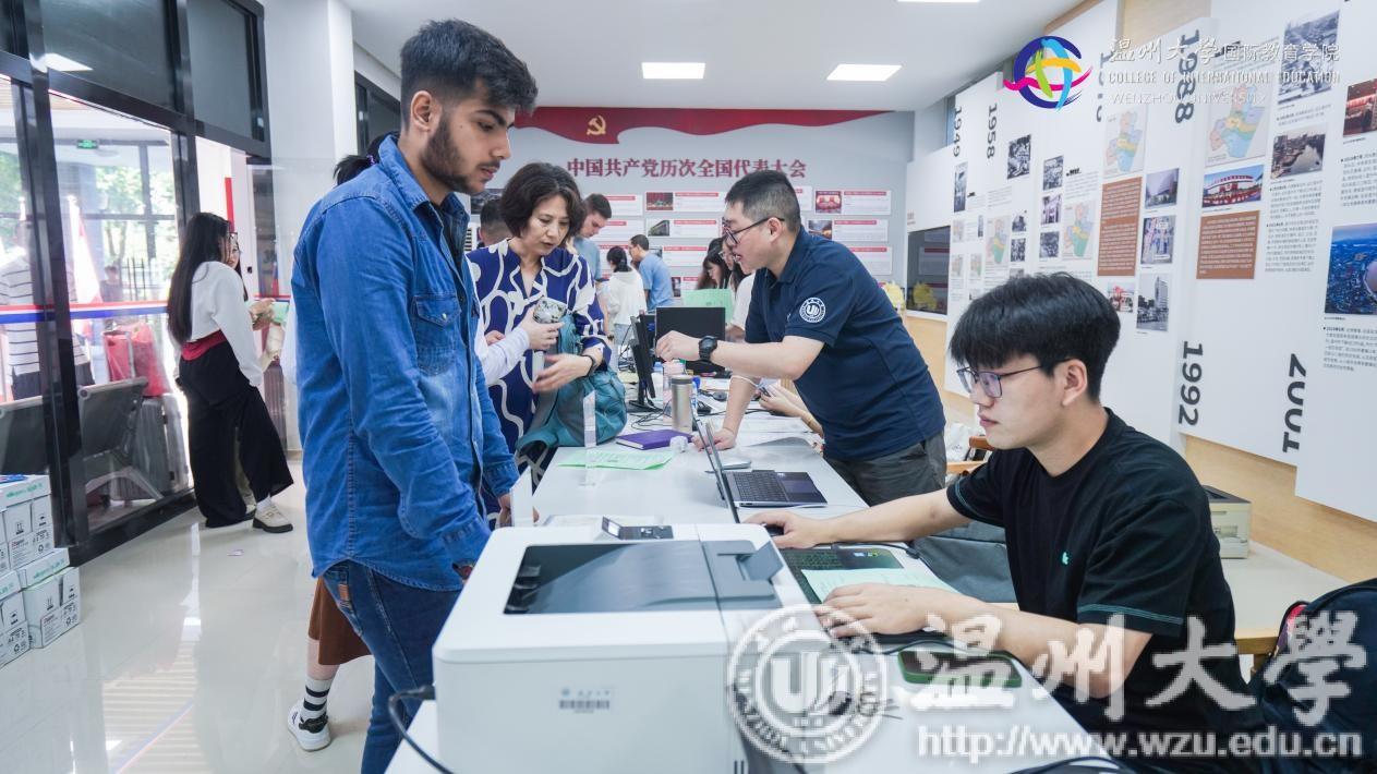 为全力做好2023年留学生迎新工作,yl6809永利官网制定了周密细致的迎新工作方案,成立迎新工作小组及学生志愿者小组,为留学生新生报到注册提供一站式服务,包括报到引导、核验材料、购买保险、住宿办理、体检安排、发放双语学生手册等。报到现场井然有序、热闹非凡,国际化的青春朝气扑面而来。来自越南的留学生谭妙河表示:“我喜欢温大,也谢谢各位老师的帮助,你们辛苦了!”