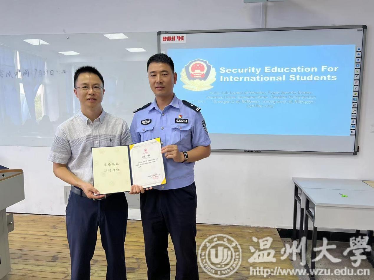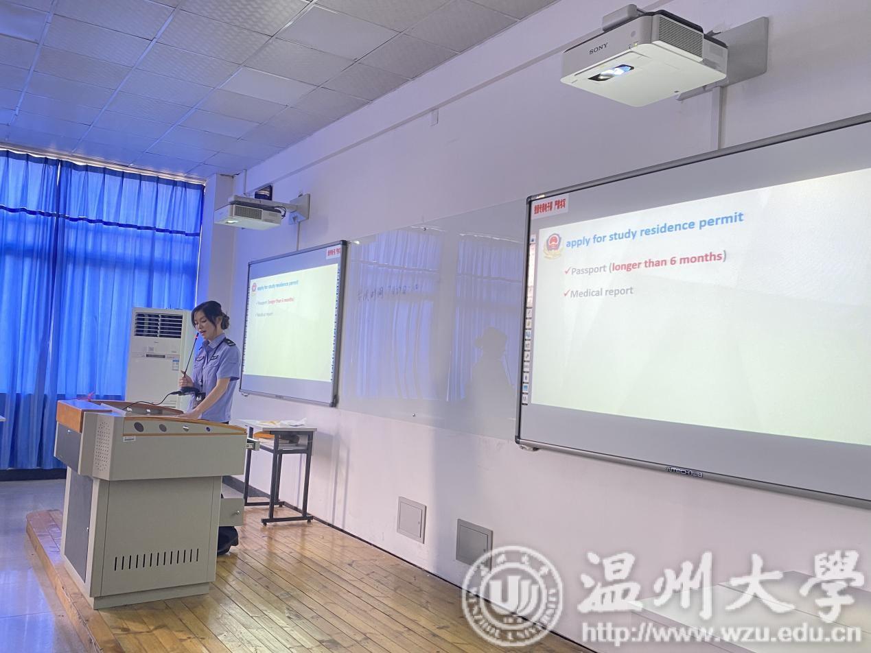 与法同行,安全护航。为切实增强留学生的守法观念和安全意识,9月15日下午,永利官网特邀温州市公安局瓯海区分局茶山派出所陈海敏、胡亦舒警官进行中国法律、安全、禁毒、反诈骗讲座,以及瓯海区公安分局出入境张小雯警官进行签证办理讲解。一个个鲜活的典型案例给留学生们敲响遵纪守法的“警钟”,让守法观念和安全意识更加深入人心。