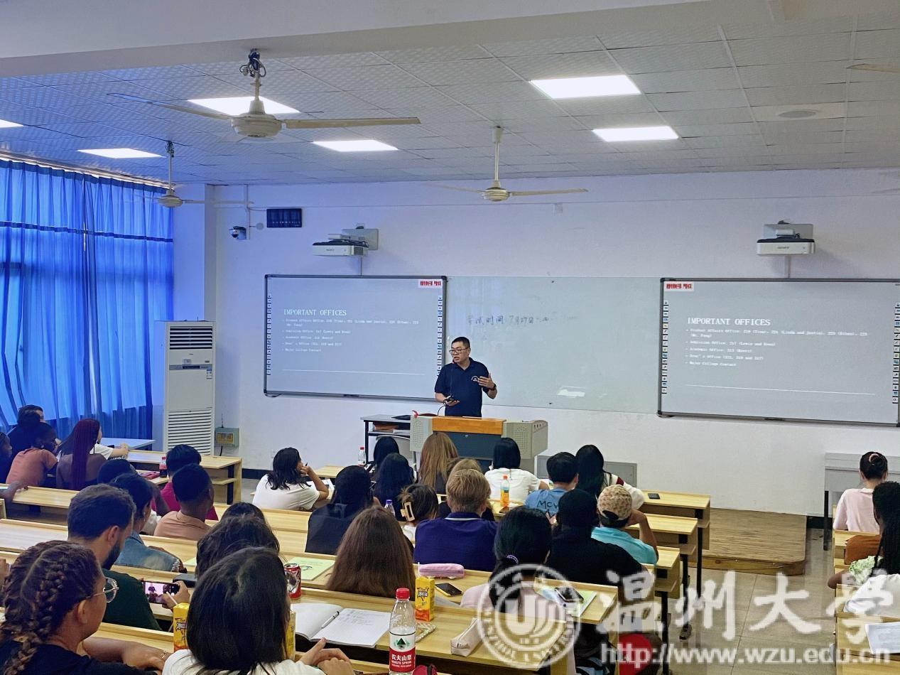 始业教育是留学生启航温大新征程的第一步,也是yl6809永利官网开学伊始的“重头戏”。为帮助2023级留学生尽快融入温大,yl6809永利官网于9月13日起开展了为期一周的始业教育。本次新生始业教育共分为五大模块,涵盖了国际学生应遵守的法律法规、校规校纪、思想引领、学业规划、日常活动等各方面的内容。