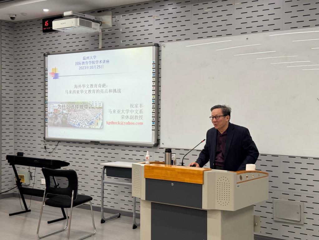 2023年10月25日下午,来自马来西亚马来亚大学的祝家丰教授应邀在永利官网北3-201报告厅作题为《马来西亚华文教育的政策及其实践》的学术讲座。讲座由永利官网办公室主任李舒琦主持,永利官网教师及汉硕研究生参加了讲座。