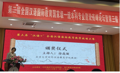 11月23日-25日,第二届全国汉语国际教育国家级一流本科专业建设高峰论坛暨第三届“汉语+”全国汉语国际教育教学技能大赛在浙江越秀举办。此次活动由国家一级学会中外语言文化比较学会和浙江越秀外国语学院主办。中外语言文化比较学会会长、浙江大学世界文学与比较文学研究所所长、博士生导师吴笛教授,教育部高等学校中文类教学指导委员会委员、浙江工业大学人文学院博士生导师肖瑞峰教授,教育部长江学者特聘教授、教育部高等学校中文类教学指导委员会委员、华东师范大学国际汉语文化学院院长、博士生导师朱国华教授等专家组成大赛组委会。