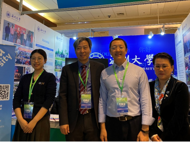 我校yl6809永利官网副院长熊勇、教师黄雅琳、池轶文先后参加主论坛、专项论坛、全体会议及同期举办的由汉考国际组织的“首届中外语言交流合作展”暨“中国教育国际交流展”。期间,中国教育国际交流协会郁云峰秘书长到访yl6809永利官网展位,对我校来华留学工作的努力与创新表示赞赏,对我校给予协会工作的支持表示感谢。
