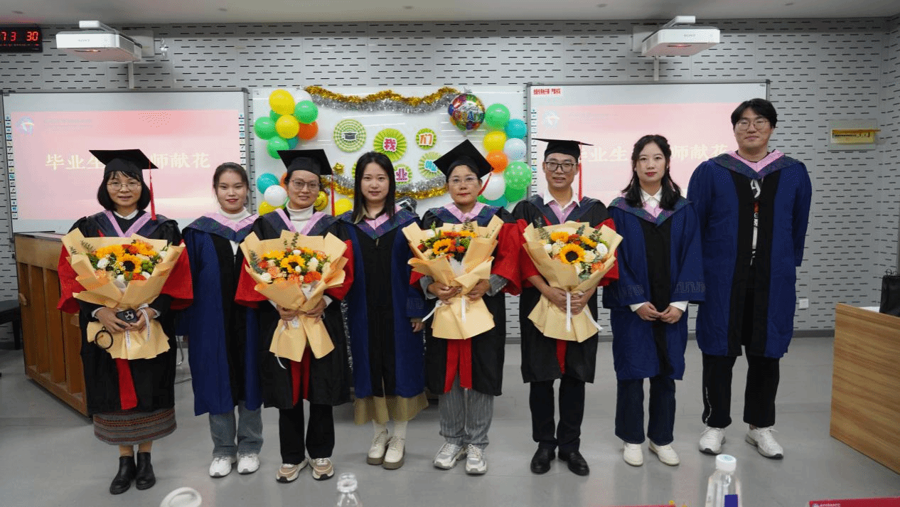 桃李不言,下自成蹊。毕业生们为导师献上鲜花,表达了对他们的感激之情。这一环节让在场的师生们感受到了深深的情感纽带和师生情谊。毕业生们纷纷表示,导师们的教诲和指导将永远铭记在心。导师们也为学生们送上了祝福和期望,希望他们能够在未来的道路上继续前行,实现自己的人生目标!
