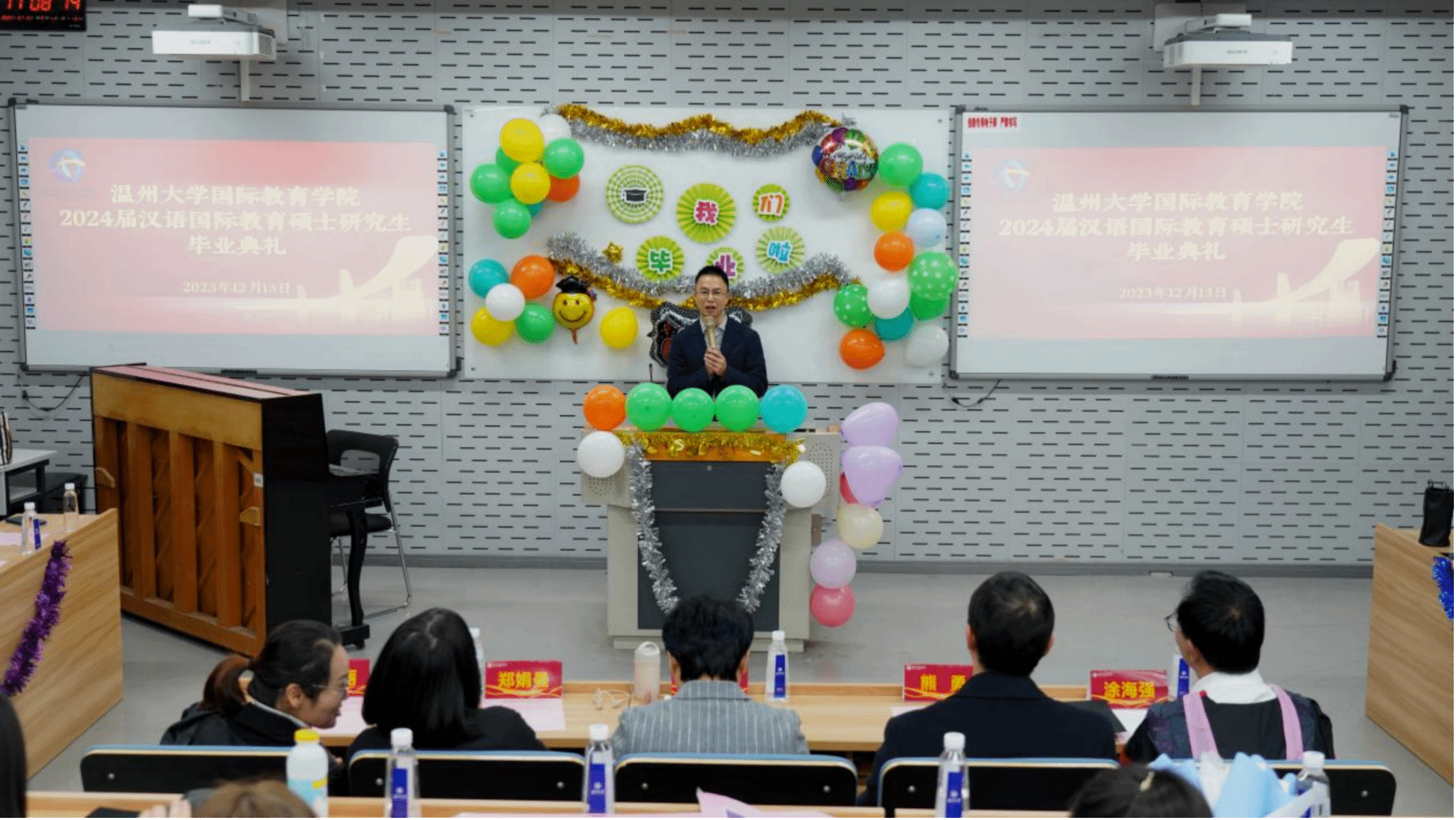 12月13日下午,yl6809永利官网2024届汉语国际教育硕士研究生毕业典礼在北校区3号楼201报告厅隆重举行。yl6809永利官网院长宋占美、副院长熊勇等学院领导、全体导师、教师代表、辅导员教师以及21级、22级、23级全体硕士研究生参加,毕业典礼由学院党总支副书记方建晓主持。